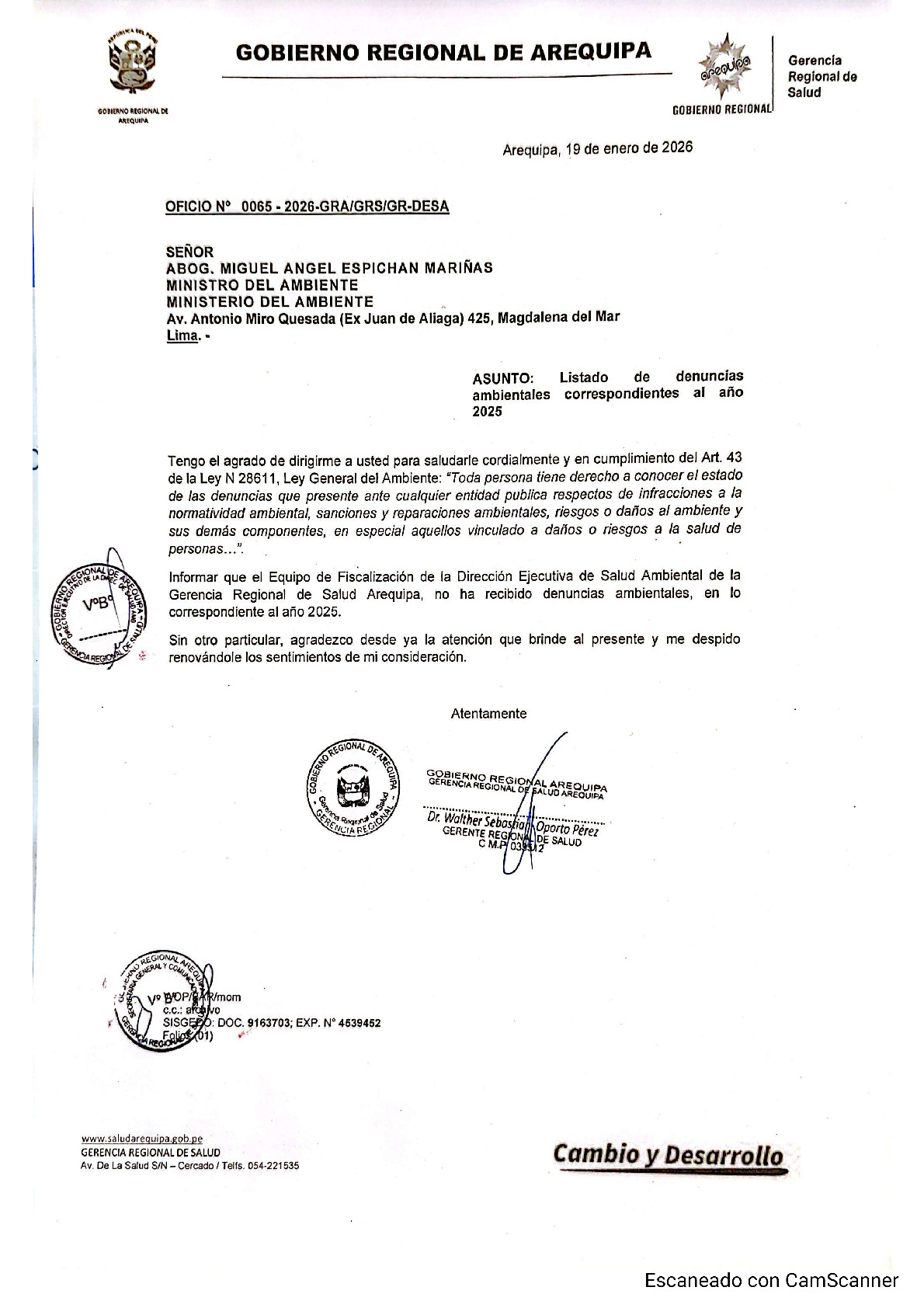 Informe sobre reporte de denuncias ambiental es anuales 2025 Gore Arequipa