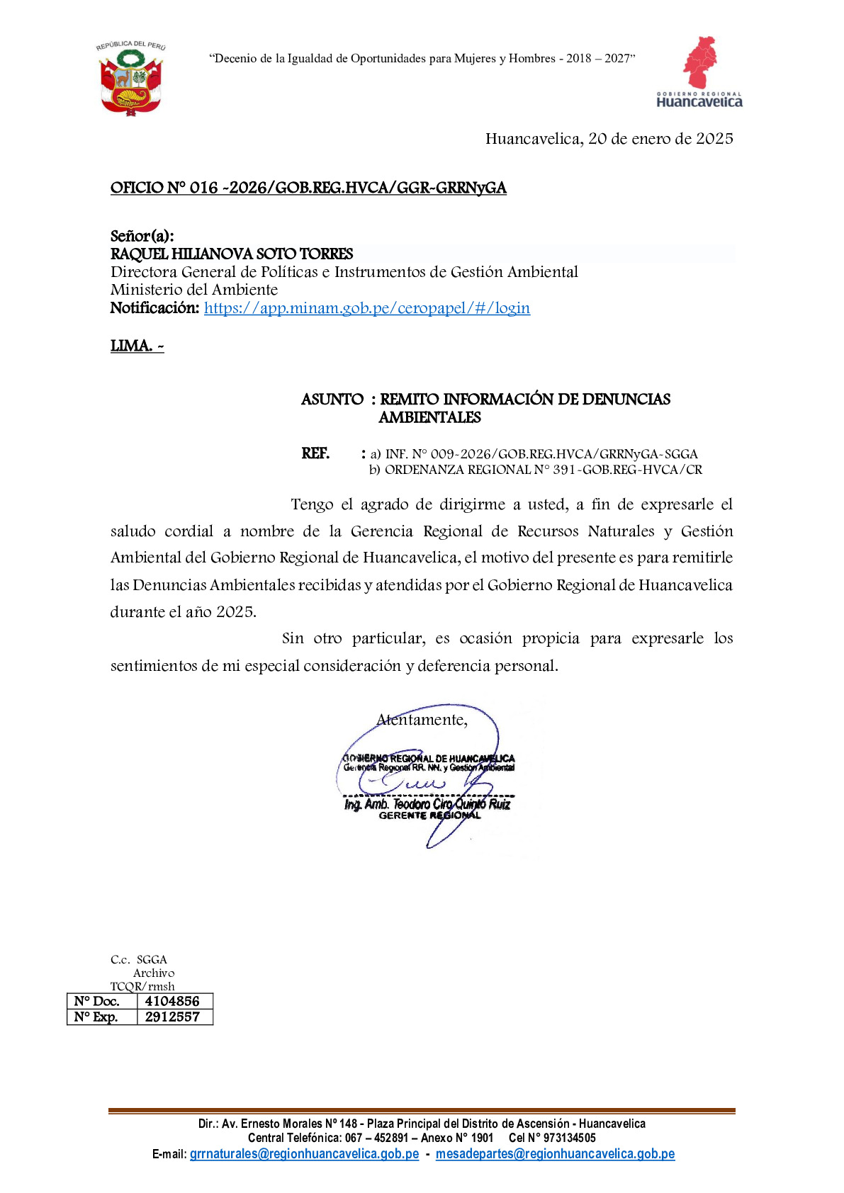 | OFICIO 016 2026 DENUNCIAS AMBIENTALES MINAM-fusionado-1.pdf | 168.92 KB |