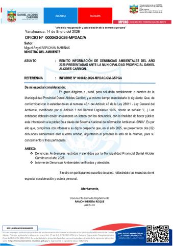 Informe sobre reporte de denuncias ambiental es anuales 2025 Municipalidad Provincial de Daniel Alcides Carrion