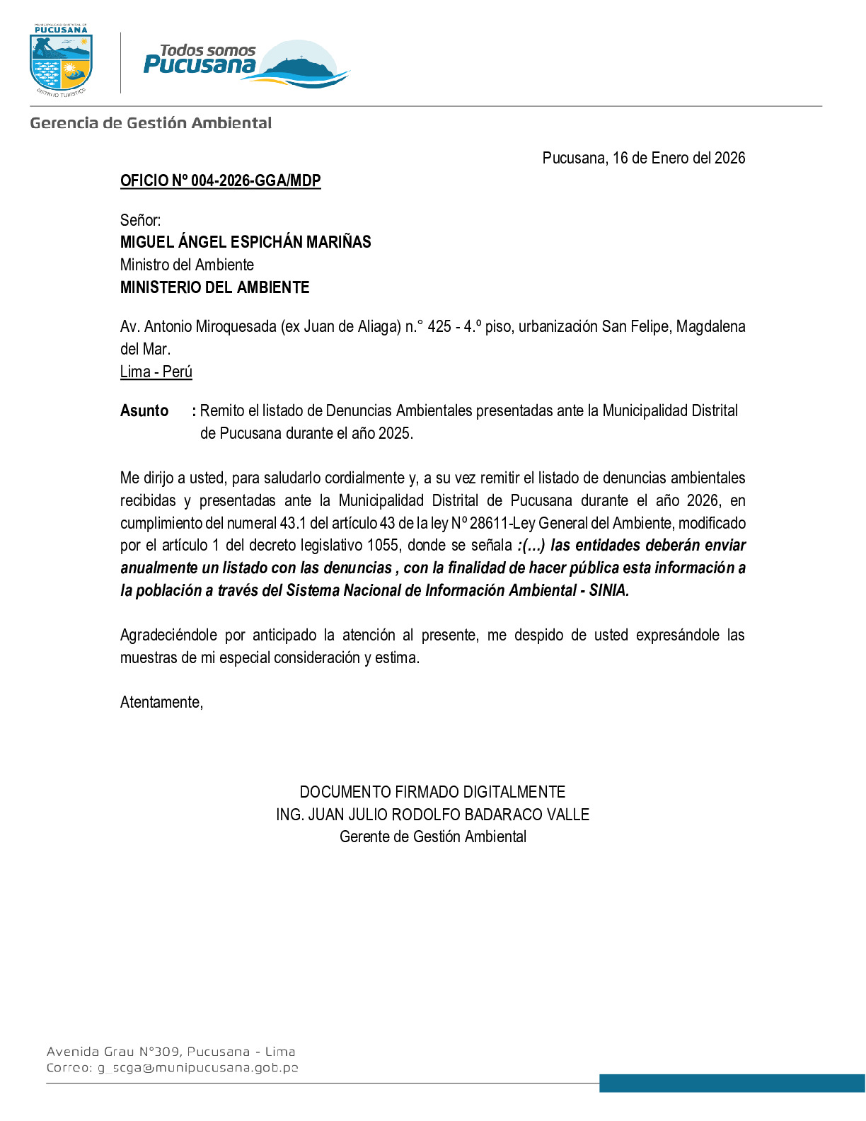 Informe sobre reporte de denuncias ambiental es anuales 2025 Municipalidad de Pucusana