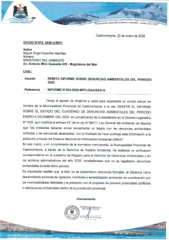 Informe sobre reporte de denuncias ambiental es anuales 2025 Municipalidad Provincial de Castro Virreyna