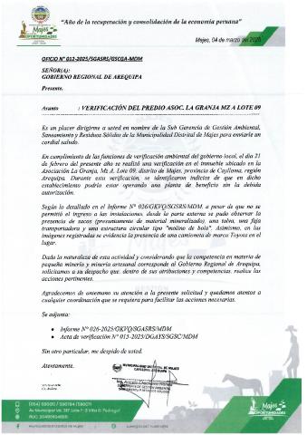 Informe sobre reporte de denuncias ambiental es anuales 2025 Municipalidad Distrital de Majes