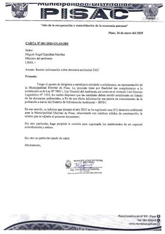 Informe sobre reporte de denuncias ambiental es anuales 2025Municipalidad Distrital de Pisac