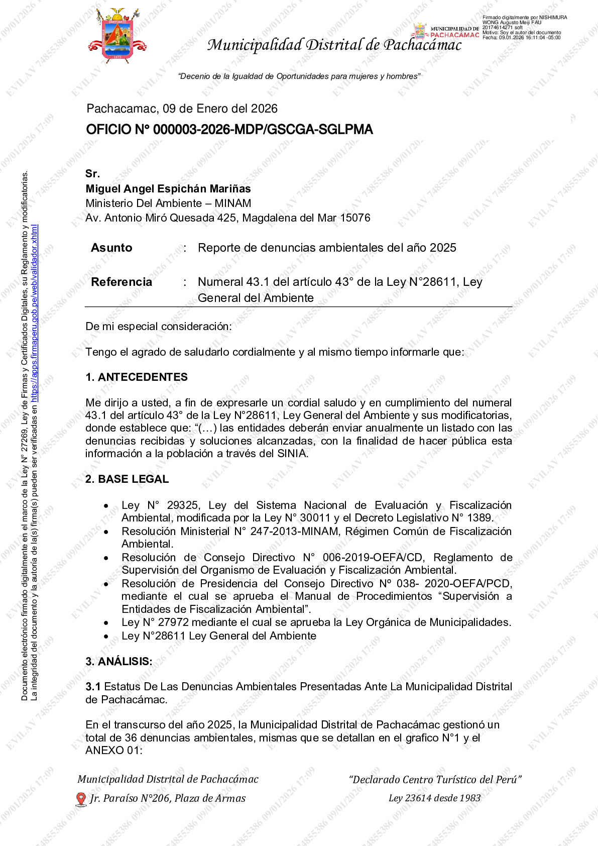 Listado de denuncias ambientales 2024 de la Municipalidad Distrital de Pachacamac