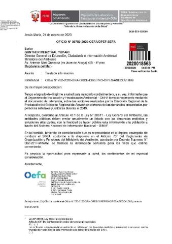 Listado de denuncias ambientales y acciones realizadas por la Dirección Regional de Producción de Ancash en el 2019