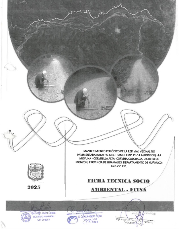 Mantenimiento periodico del camino vecinal no pavimentada ruta hu-654 tramo: (Rondos) - La Moyuna - Corvinilla Alta - Corvina Colorada, ditrito de Monzon, provincia de Huamalies, departamento de Huánuco, l=8.755 km
