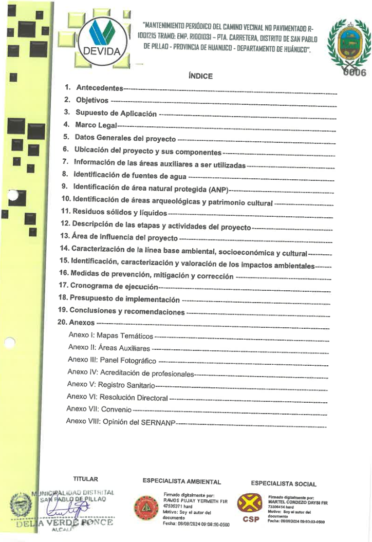 "Mantenimiento periódico del camino vecinal no pavimentado r-1001215 tramo: emp. r1001031 - pta. carretera, distrito de San Pablo de Pillao-provincia de Huánuco - departamento de Huánuco"