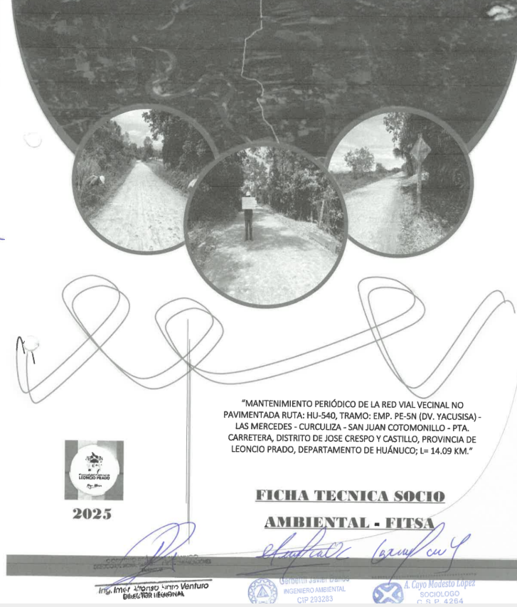 Mantenimiento periodico del camino vecinal no pavimentado ruta - 540, tramo: emp. pe - 5n (dv. Yacusisa) – Las Mercedes - Curculiza – San Juan Cotomonillo – pta. carretera, distrito de Jose Crespo y Castillo, provincia de Leoncio Prado