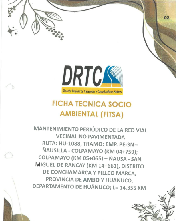 Mantenimiento periódico de camino vecinal no pavimentado ruta: hu-1088, tramo: emp. pe-3n – Ñausilla - Colpamayo (km 04+759); Colpamayo (km 05+065) – Ñausa - San Miguel de Rancay (km 14+661), distrito de Conchamarca y Pillco Marca, provincia de Ambo