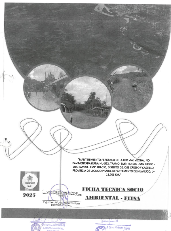 Mantenimiento periódico de camino vecinal no pavimentado ruta: hu-552, tramo: emp. hu-505 – San Isidro – UTC Bambu - emp. hu-551, distrito de José Crespo y Castillo, provincia de Leoncio Prado, departamento de Huánuco; l= 11.705 km