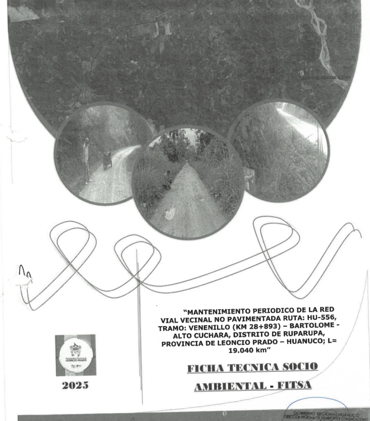 Mantenimiento periódico de camino vecinal no pavimentado ruta: hu-556, tramo: Venenillo (km 28+893) – Bartolome - Alto Cuchara, distrito de Ruparupa, provincia de Leoncio Prado – Huánuco; l= 19.040 km