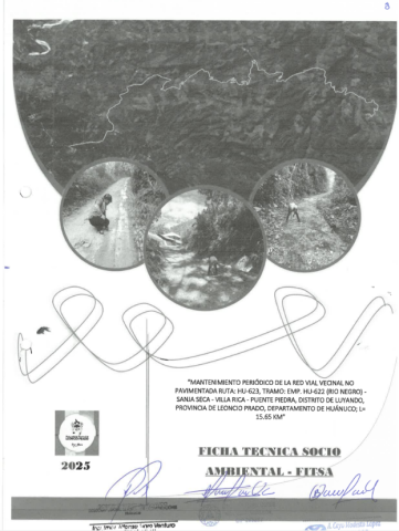 Mantenimiento periódico del camino vecinal no pavimentado ruta: hu – 623, tramo: emp. hu -622 (Rio Negro) – Sanja Seca – Villa Rica – Puente Piedra, distrito de Luyando, provincia de Leoncio Prado, departamento de Huánuco; l=15.65 km