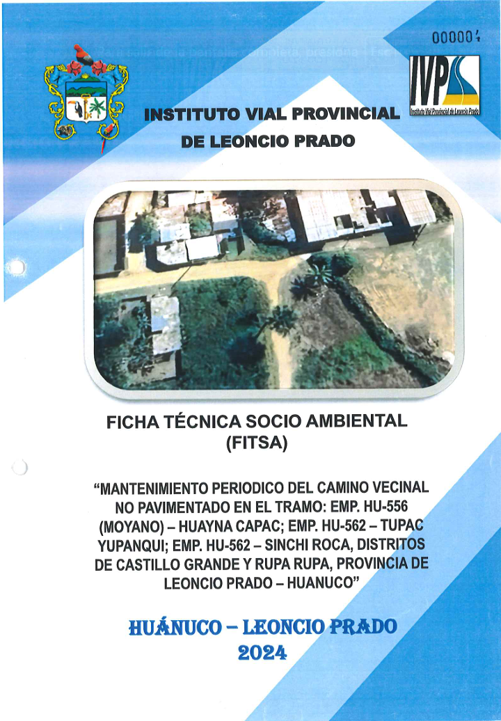 "Mantenimiento periódico del camino vecinal no pavimentado en el tramo: emp. hu-556 (Moyano)-Huayna Capac; emp. hu-562-Tupac Yupanqui; emp. hu- 562 Sinchi Roca, distritos de Castillo Grande y Rupa Rupa, provincia de Leoncio Prado - Huánuco"