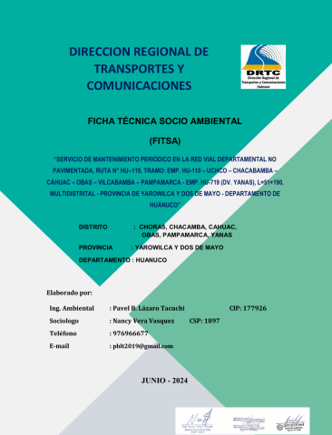 Mantenimiento y Periódico en la Red Vial Departamental No Pavimentada, Ruta N° HU-119, Tramo: Emp. HU-110-Uchco - Chacabamba - Cáhuac - Obas - Vilcabamba - Pampamarca - Emp. HU-719 (Dv. Yanas), L=51+190, Multidistrital