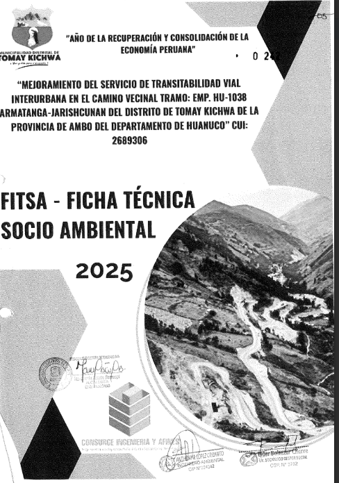 "Mejoramiento del servicio de transitabilidad vial interurbana en el camino vecinal: emp. hu-1038 (Armatanga) Jarishcunan del distrito de Tomay Kichwa de la provincia de Ambo del departamento de Huánuco" con CUI 2689306