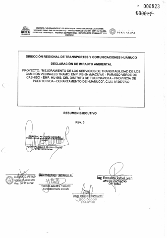 “Mejoramiento de los servicios de transitabilidad de los caminos vecinales tramo emp. – pe-5n (Macuya) – ´Paraiso Verde de Cashibo – emp. hu 963 del Distrito de Tournavista, Provincia de Puerto Inca, Departamento de Huánuco” con cui n° 2570732