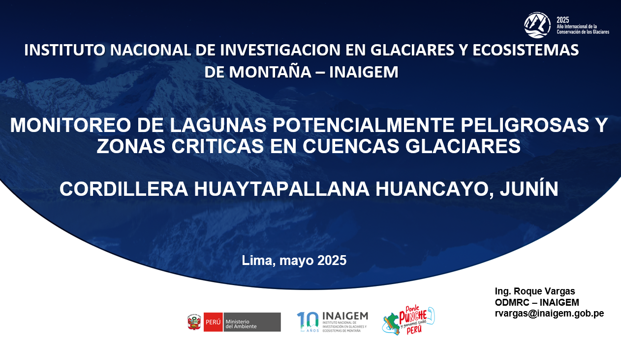 Monitoreo de lagunas potencialmente peligrosas y zonas críticas en cuencas glaciares . Cordillera del Huaytapallana