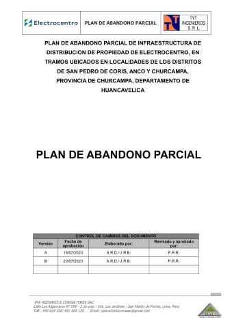 Plan de Abandono Parcial de Infraestructura de Distribución de Propiedad de Electrocentro, en Tramos Ubicados en Localidades de los Distritos de San Pedro de Coris, Anco y Churcampa, Provincia de Churcampa, Departamento de Huancavelica