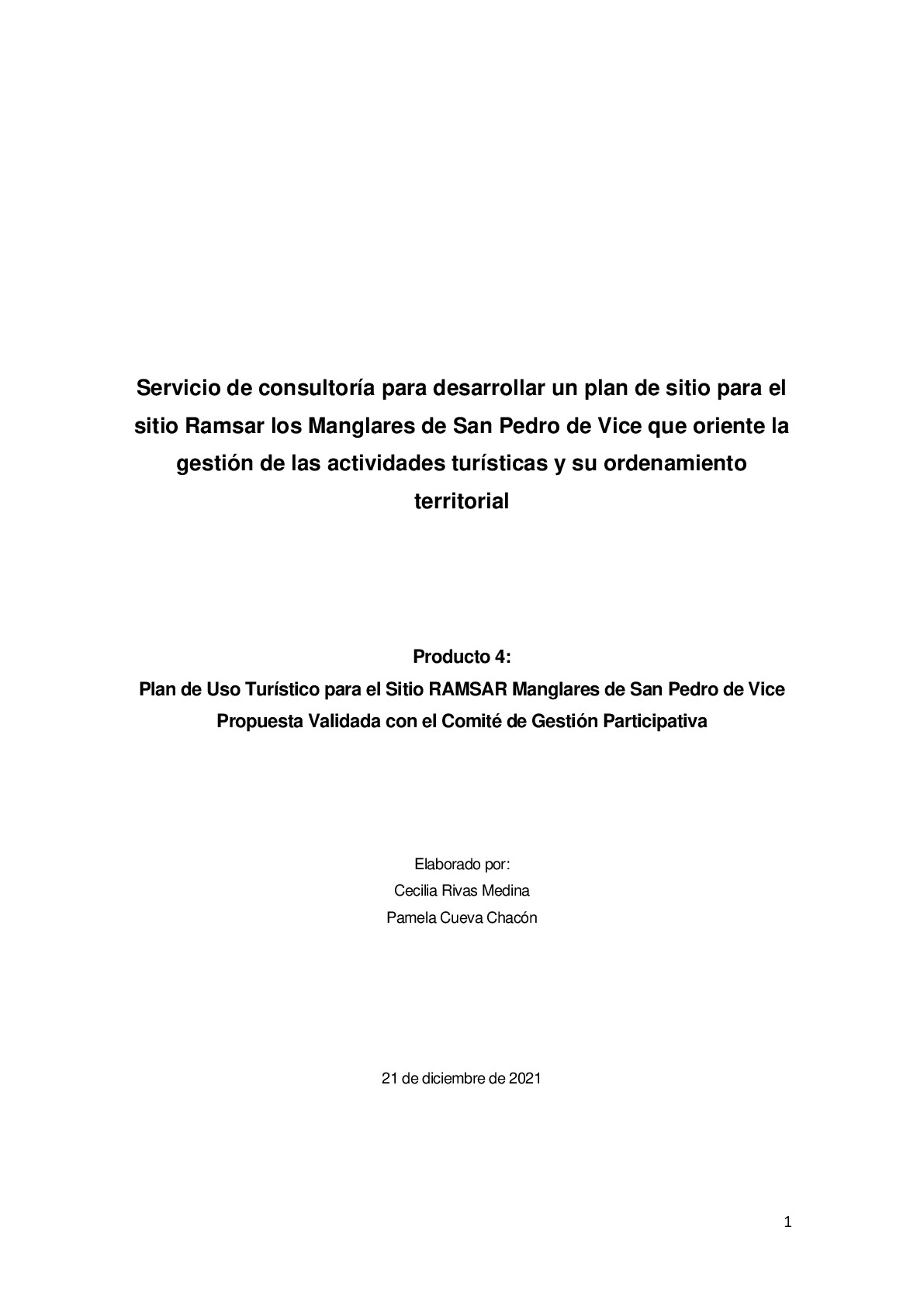 Plan de Uso Turístico del Sitio Ramsar San Pedro de Vice
