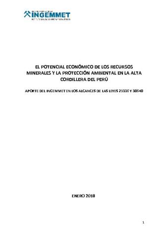 EL POTENCIAL ECONÓMICO DE LOS RECURSOS MINERALES Y LA PROTECCIÓN AMBIENTAL EN LA ALTA CORDILLERA DEL PERÚ