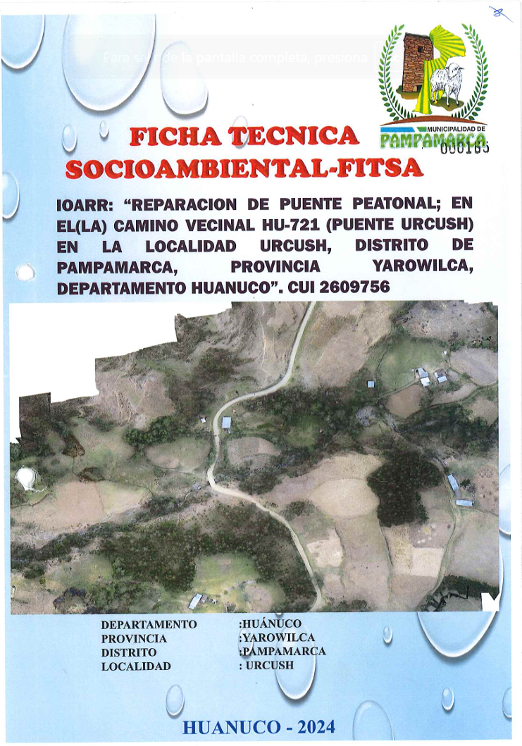 Contar con la viabilidad ambiental de la actividad: "REPARACIÓN DE PUENTE; EN EL(LA) CAMINO VECINAL HU-721 (PUENTE URCUSH) EN LA LOCALIDAD URCUSH, DISTRITO DE PAMPAMARCA, PROVINCIA YAROWILCA, DEPARTAMENTO HUÁNUCO" con CUI 2609756.