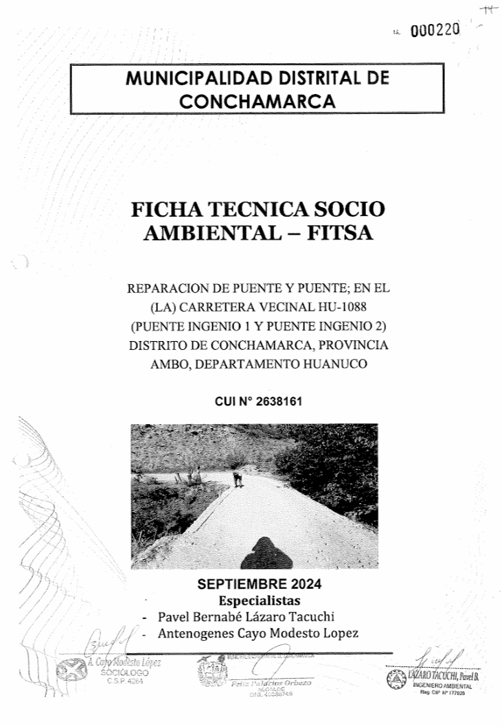 "Reparación de puente y puente; en el (la) carretera vecinal HU-1088 (puente Ingenio 1 y puente Ingenio 2) distrito de Conchamarca, provincia Ambo, departamento Huánuco"