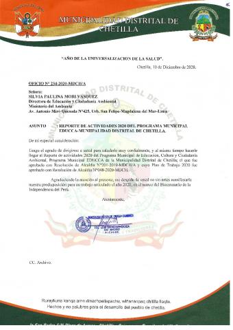 Reporte 2020 Programa Municipal EDUCCA - Municipalidad Distrital de Chetilla