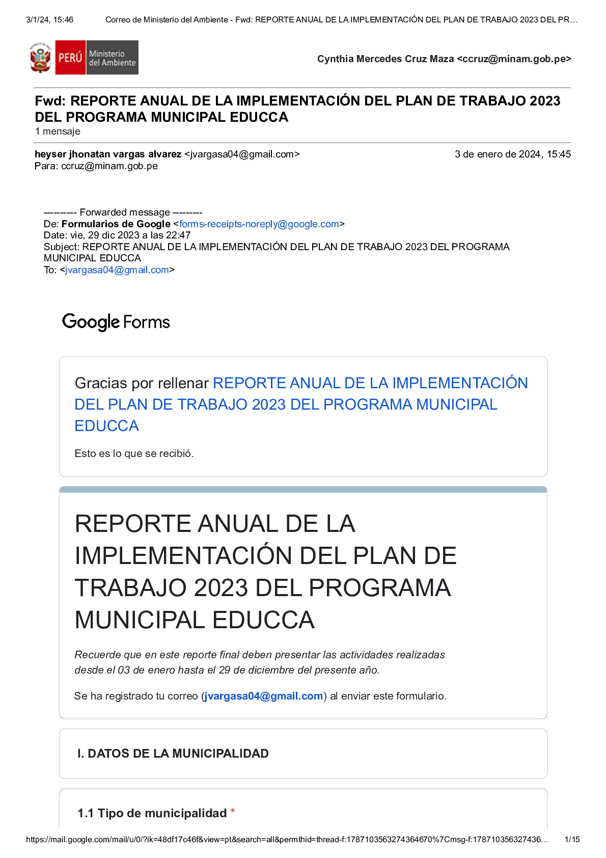 En este Reporte Anual de la implementación del Plan de Trabajo 2023 del Programa Municipal EDUCCA, se presentan las tareas y actividades realizadas durante el período del 3 de enero al 29 de diciembre de 2023. El documento ha sido elaborado por la Municipalidad Provincial de Sánchez Carrión, región La Libertad, como parte de sus acciones en el marco del Programa Municipal EDUCCA.