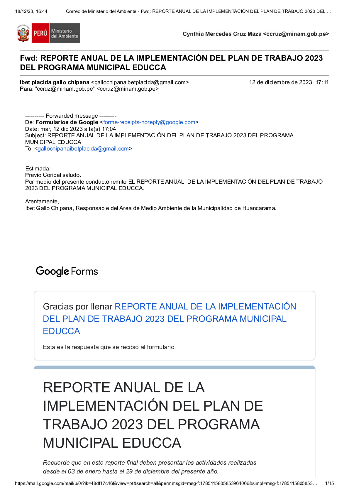 En este Reporte Anual de la implementación del Plan de Trabajo 2023 del Programa Municipal EDUCCA, se presentan las tareas y actividades realizadas durante el período del 3 de enero al 29 de diciembre de 2023. El documento ha sido elaborado por la Municipalidad Distrital de Huancarama, Provincia de Andahuaylas, Región Apurímac, como parte de sus acciones en el marco del Programa Municipal EDUCCA.