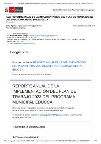 En este Reporte Anual de la implementación del Plan de Trabajo 2023 del Programa Municipal EDUCCA, se presentan las tareas y actividades realizadas durante el período del 3 de enero al 29 de diciembre de 2023. El documento ha sido elaborado por la Municipalidad Distrital de Huipoca, provincia Padre Abad, región Ucayali, como parte de sus acciones en el marco del Programa Municipal EDUCCA.