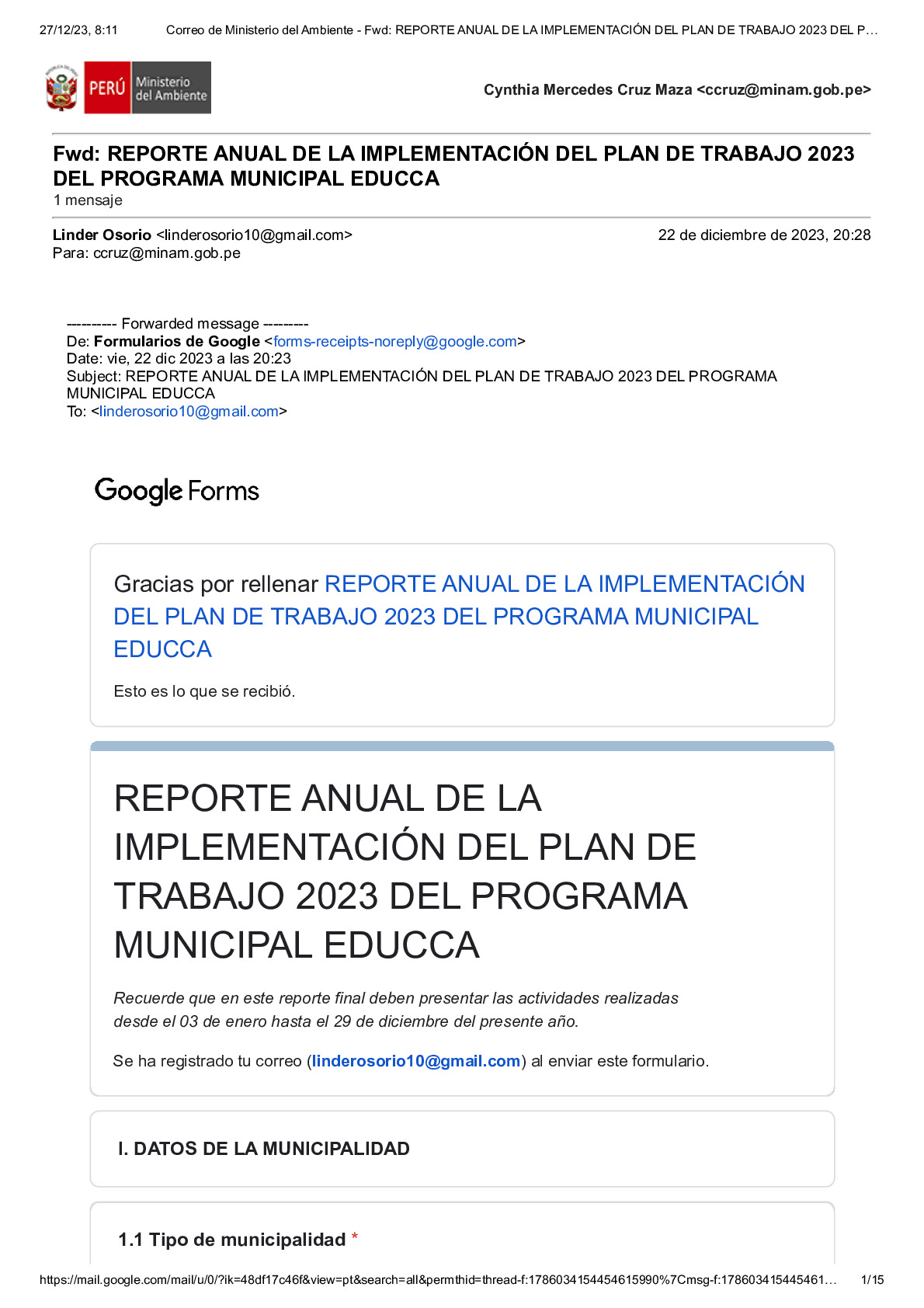 En este Reporte Anual de la implementación del Plan de Trabajo 2023 del Programa Municipal EDUCCA, se presentan las tareas y actividades realizadas durante el período del 3 de enero al 29 de diciembre de 2023. El documento ha sido elaborado por la Municipalidad Provincial de Carhuaz, Región Áncash, como parte de sus acciones en el marco del Programa Municipal EDUCCA.