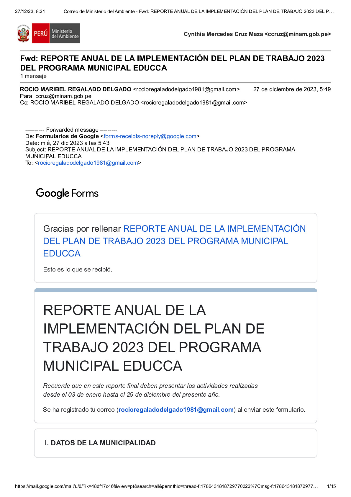 En este Reporte Anual de la implementación del Plan de Trabajo 2023 del Programa Municipal EDUCCA, se presentan las tareas y actividades realizadas durante el período del 3 de enero al 29 de diciembre de 2023. El documento ha sido elaborado por la Municipalidad Distrital de Cascapara, Provincia de Yungay, Región Áncash, como parte de sus acciones en el marco del Programa Municipal EDUCCA.
