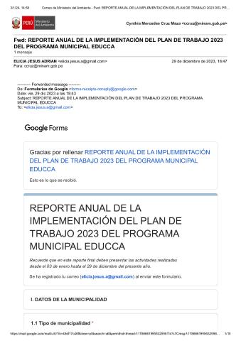 En este Reporte Anual de la implementación del Plan de Trabajo 2023 del Programa Municipal EDUCCA, se presentan las tareas y actividades realizadas durante el período del 3 de enero al 29 de diciembre de 2023. El documento ha sido elaborado por la Municipalidad Distrital de Monzon, provincia de Huamalíes, región Huánuco, como parte de sus acciones en el marco del Programa Municipal EDUCCA.