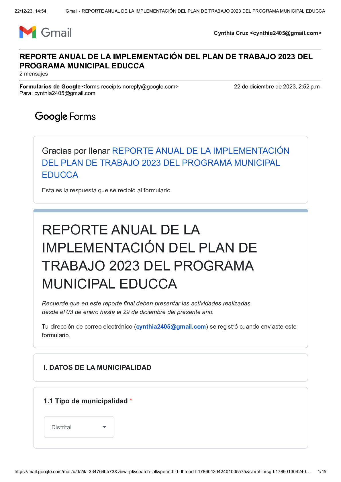 En este Reporte Anual de la implementación del Plan de Trabajo 2023 del Programa Municipal EDUCCA, se presentan las tareas y actividades realizadas durante el período del 3 de enero al 29 de diciembre de 2023. El documento ha sido elaborado por la Municipalidad Distrital de Santa, Provincia de Santa, Región Áncash, como parte de sus acciones en el marco del Programa Municipal EDUCCA.
