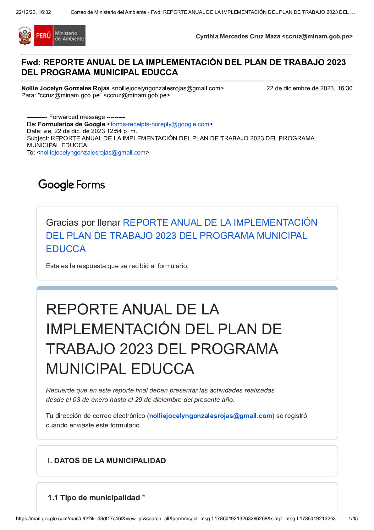 En este Reporte Anual de la implementación del Plan de Trabajo 2023 del Programa Municipal EDUCCA, se presentan las tareas y actividades realizadas durante el período del 3 de enero al 29 de diciembre de 2023. El documento ha sido elaborado por la Municipalidad Distrital de Indiana, provincia de Maynas, región Loreto, como parte de sus acciones en el marco del Programa Municipal EDUCCA.