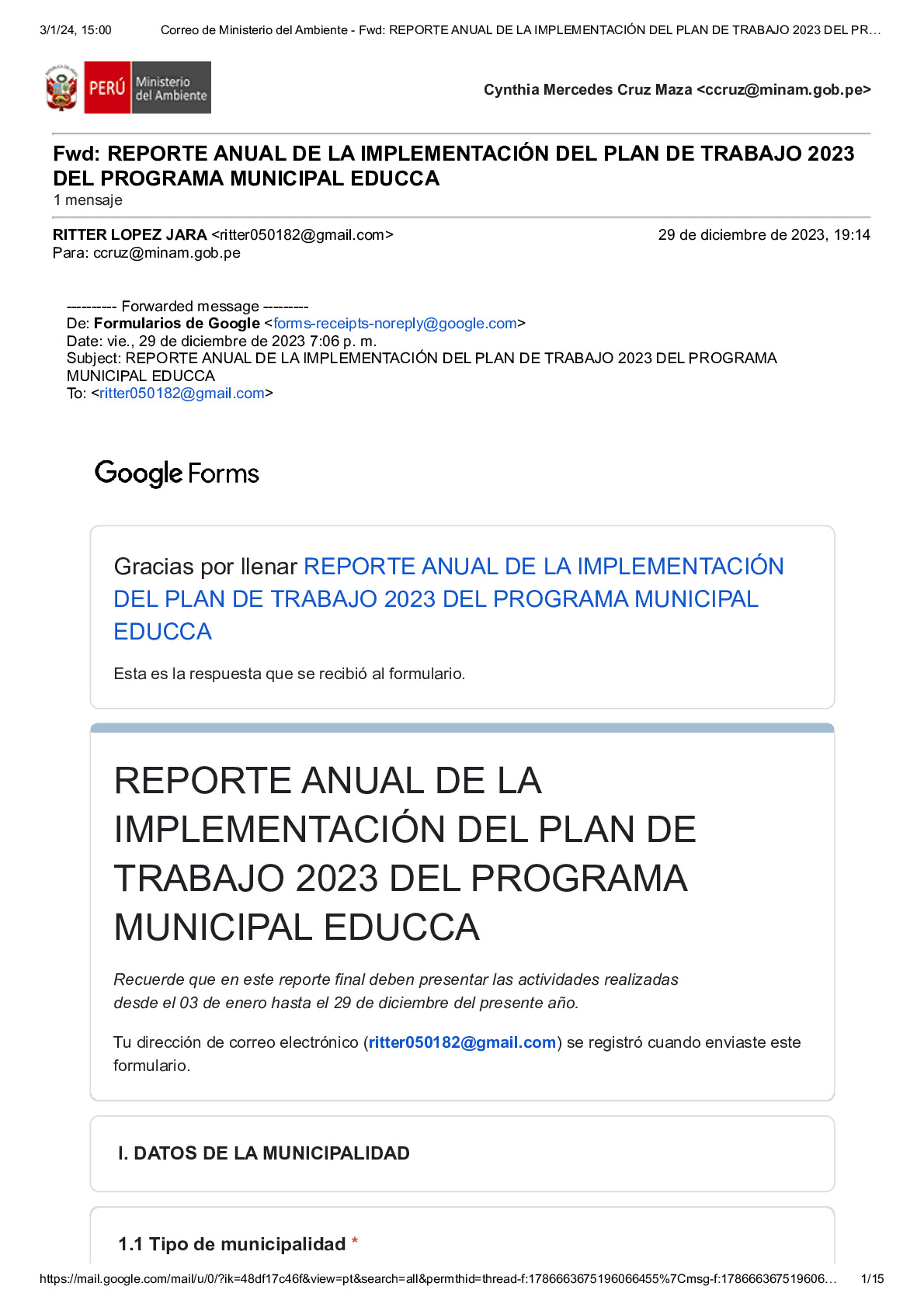 En este Reporte Anual de la implementación del Plan de Trabajo 2023 del Programa Municipal EDUCCA, se presentan las tareas y actividades realizadas durante el período del 3 de enero al 29 de diciembre de 2023. El documento ha sido elaborado por la Municipalidad Provincial de Marañón, región Huánuco, como parte de sus acciones en el marco del Programa Municipal EDUCCA.