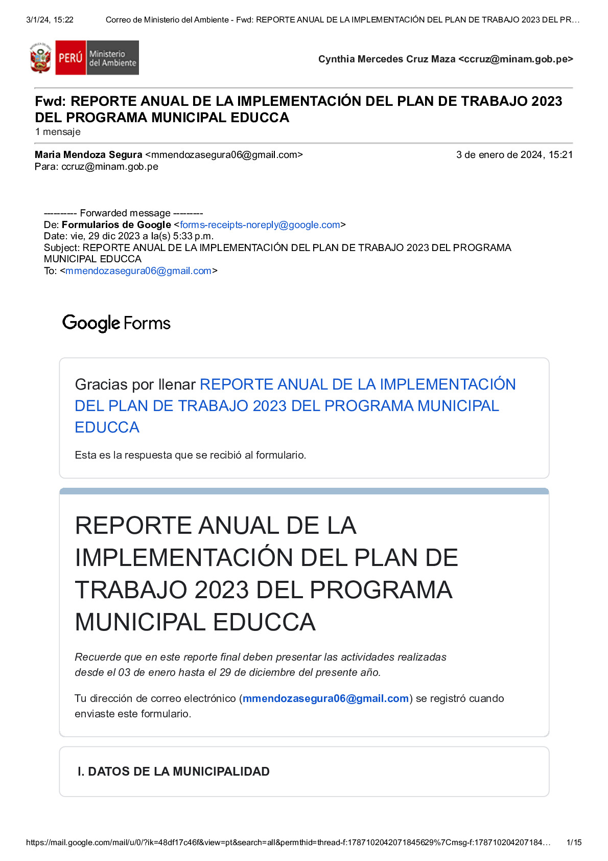 En este Reporte Anual de la implementación del Plan de Trabajo 2023 del Programa Municipal EDUCCA, se presentan las tareas y actividades realizadas durante el período del 3 de enero al 29 de diciembre de 2023. El documento ha sido elaborado por la Municipalidad Provincial de Casma, región Áncash, como parte de sus acciones en el marco del Programa Municipal EDUCCA.
