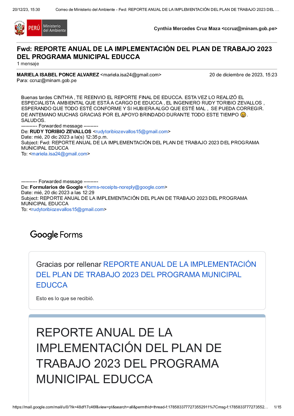 En este Reporte Anual de la implementación del Plan de Trabajo 2023 del Programa Municipal EDUCCA, se presentan las tareas y actividades realizadas durante el período del 3 de enero al 29 de diciembre de 2023. El documento ha sido elaborado por la Municipalidad Distrital de Pillco Marca, provincia de Huánuco, región Huánuco, como parte de sus acciones en el marco del Programa Municipal EDUCCA.