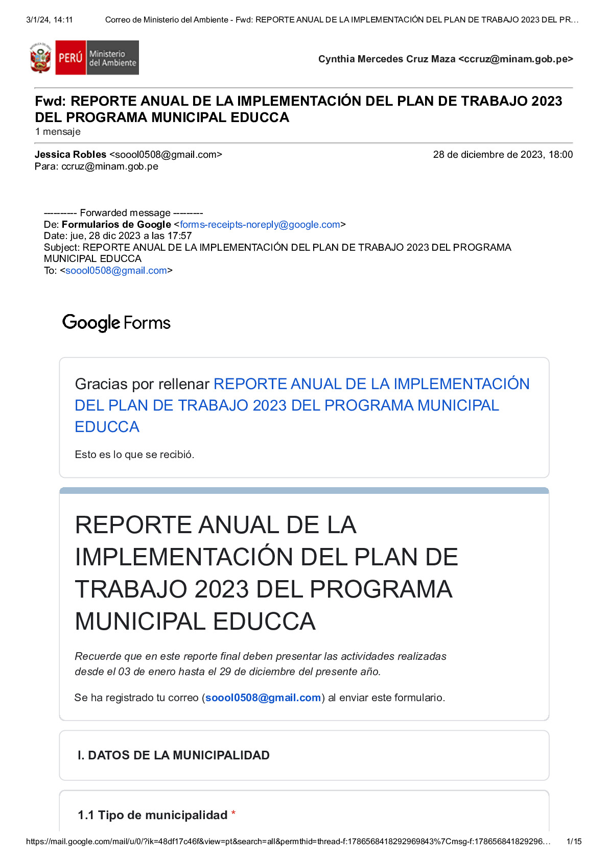 En este Reporte Anual de la implementación del Plan de Trabajo 2023 del Programa Municipal EDUCCA, se presentan las tareas y actividades realizadas durante el período del 3 de enero al 29 de diciembre de 2023. El documento ha sido elaborado por la Municipalidad Distrital de Nuevo Chimbote, provincia de Santa, región Áncash, como parte de sus acciones en el marco del Programa Municipal EDUCCA.