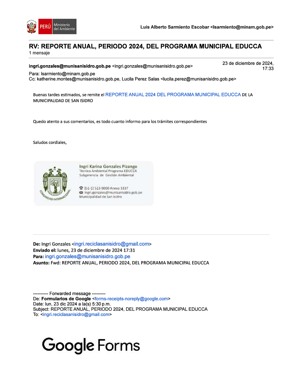 Reporte Anual 2024 del Programa Municipal EDUCCA de la Municipalidad Distrital de San Isidro, Provincia de Lima, Región Lima Metropolitana