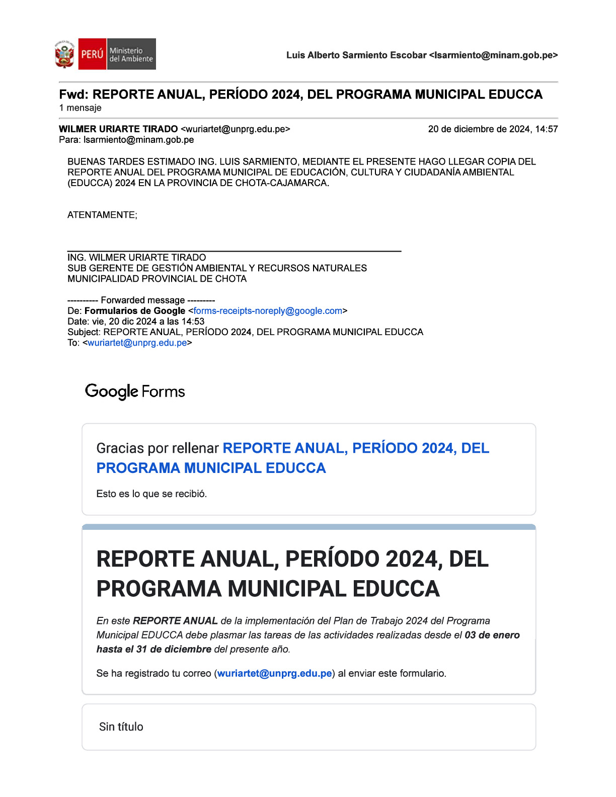 Reporte Anual 2024 del Programa Municipal EDUCCA de la Municipalidad Provincial de Chota, Provincia de Chota, Región Cajamarca