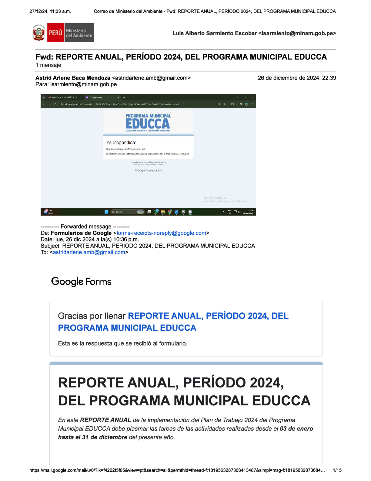 Reporte Anual 2024 del Programa Municipal EDUCCA de la Municipalidad Distrital de Agua Blanca, Provincia de El Dorado, Región San Martín