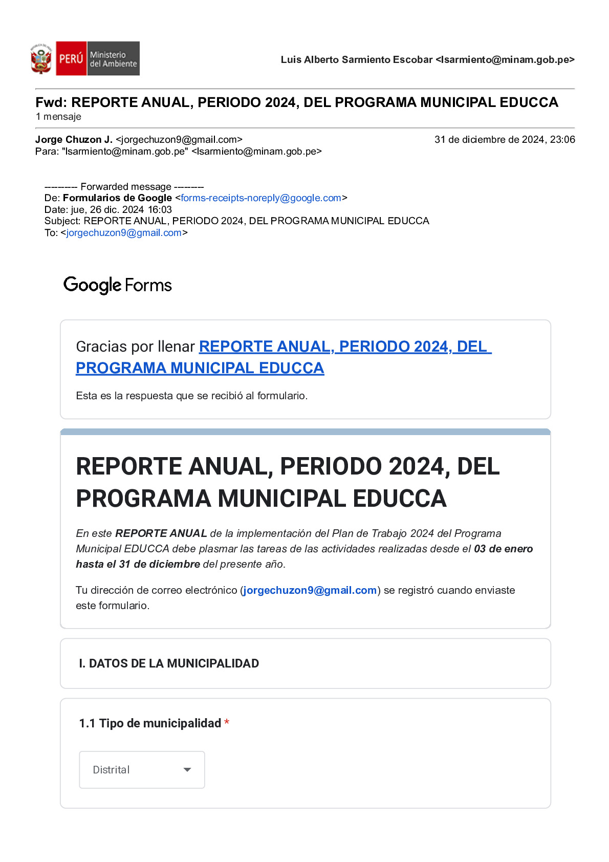 En este Reporte Anual de la implementación del Plan de Trabajo 2024 del Programa Municipal EDUCCA, se presentan las tareas y actividades realizadas durante el período del 3 de enero al 31 de diciembre de 2024. El documento ha sido elaborado por la Municipalidad Distrital de La Victoria, provincia de Chiclayo, región Lambayeque, como parte de sus acciones en el marco del Programa Municipal EDUCCA.