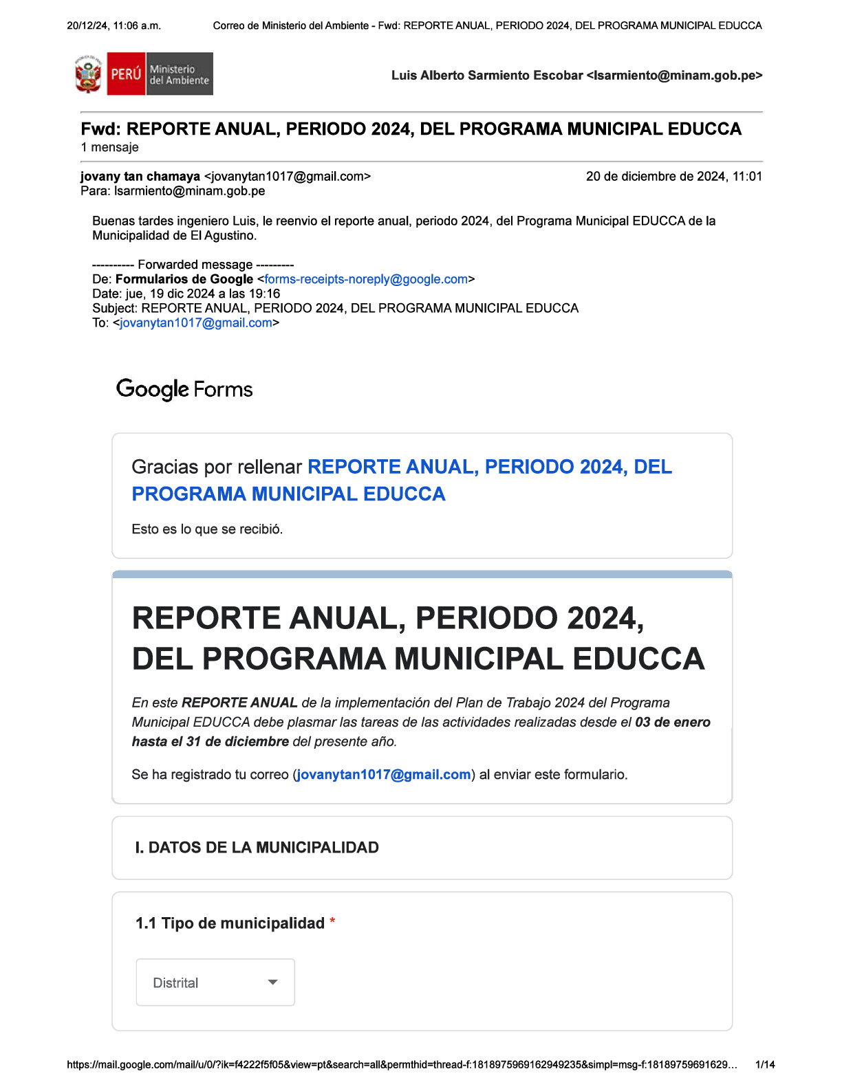 En este Reporte Anual de la implementación del Plan de Trabajo 2024 del Programa Municipal EDUCCA, se presentan las tareas y actividades realizadas durante el período del 3 de enero al 31 de diciembre de 2024. El documento ha sido elaborado por la Municipalidad Distrital de El Agustino, provincia de Lima, región Lima Metropolitana, como parte de sus acciones en el marco del Programa Municipal EDUCCA.