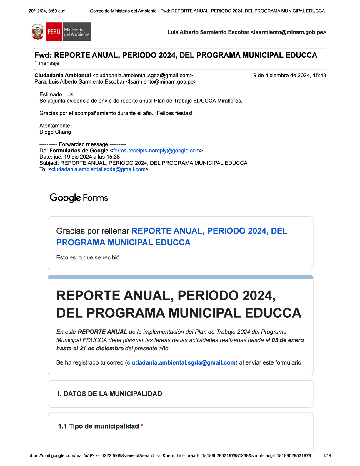 Reporte Anual 2024 del Programa Municipal EDUCCA de la Municipalidad Distrital de Miraflores, Provincia de Lima, Región Lima Metropolitana