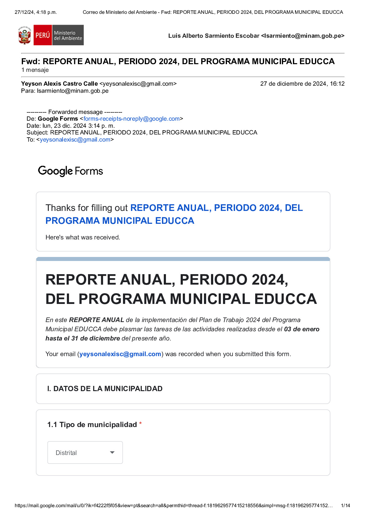 En este Reporte Anual de la implementación del Plan de Trabajo 2024 del Programa Municipal EDUCCA, se presentan las tareas y actividades realizadas durante el período del 3 de enero al 31 de diciembre de 2024. El documento ha sido elaborado por la Municipalidad Distrital de Bellavista, provincia de Sullana, región Piura, como parte de sus acciones en el marco del Programa Municipal EDUCCA.