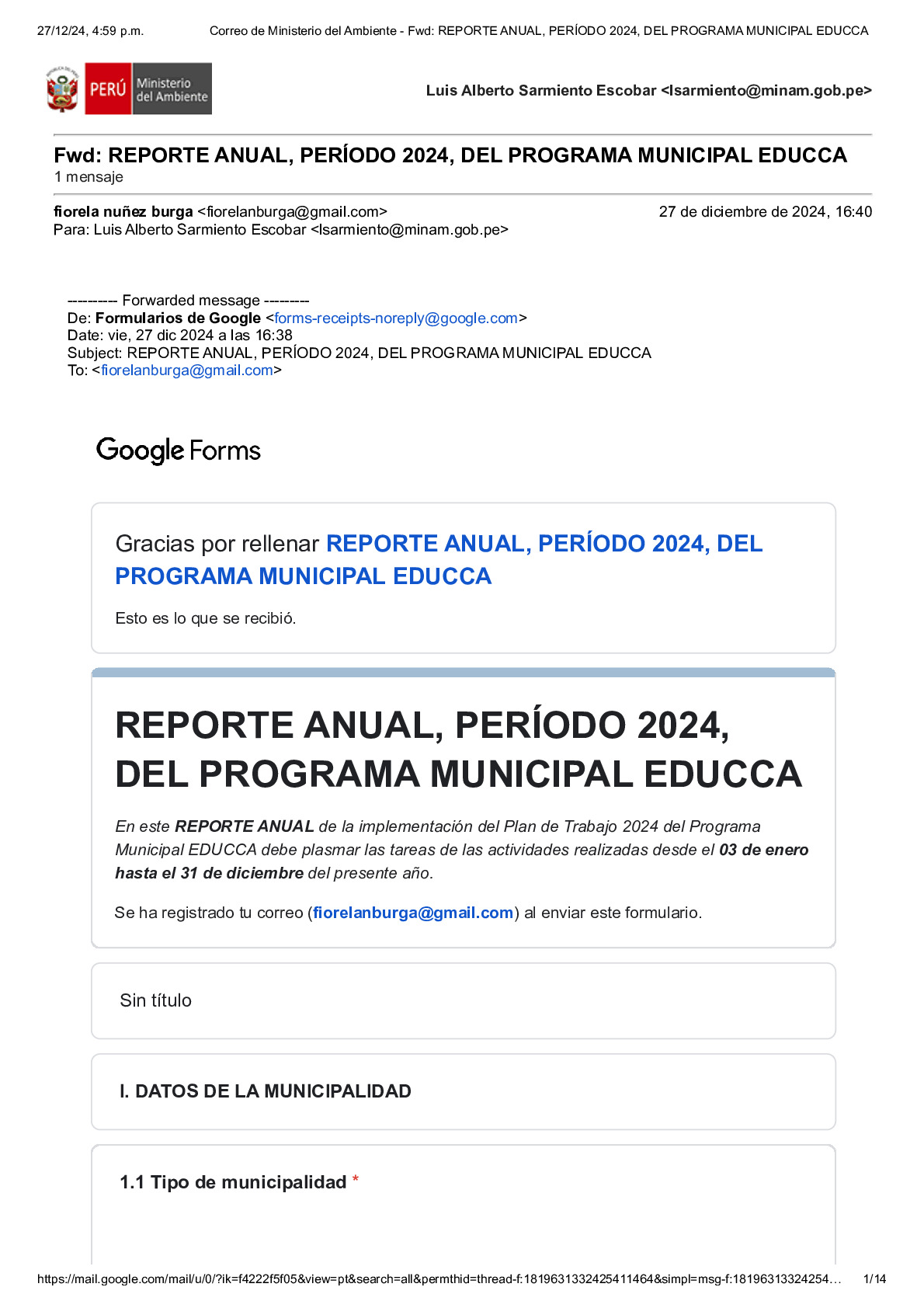 En este Reporte Anual de la implementación del Plan de Trabajo 2024 del Programa Municipal EDUCCA, se presentan las tareas y actividades realizadas durante el período del 3 de enero al 31 de diciembre de 2024. El documento ha sido elaborado por la Municipalidad Provincial de Hualgayoc, provincia de Hualgayoc, región Cajamarca, como parte de sus acciones en el marco del Programa Municipal EDUCCA.