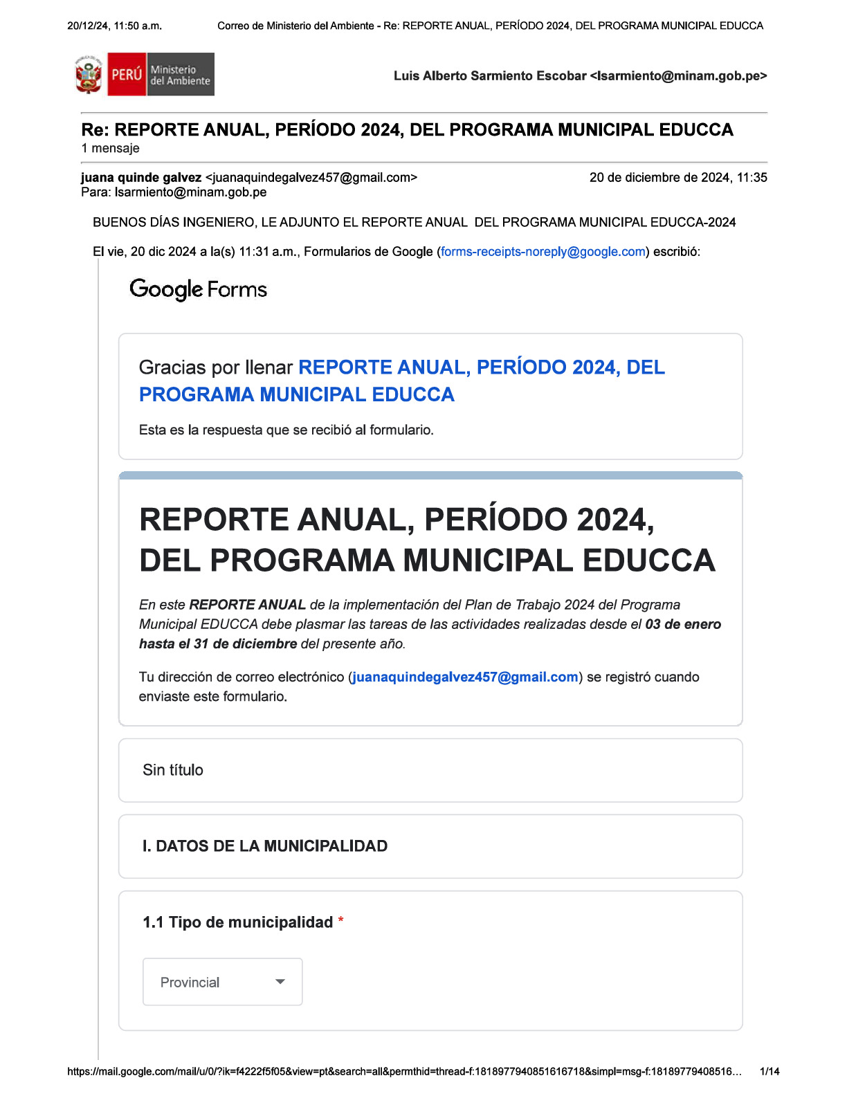 En este Reporte Anual de la implementación del Plan de Trabajo 2024 del Programa Municipal EDUCCA, se presentan las tareas y actividades realizadas durante el período del 3 de enero al 31 de diciembre de 2024. El documento ha sido elaborado por la Municipalidad Provincial de Ayabaca, provincia de Ayabaca, región Piura, como parte de sus acciones en el marco del Programa Municipal EDUCCA.
