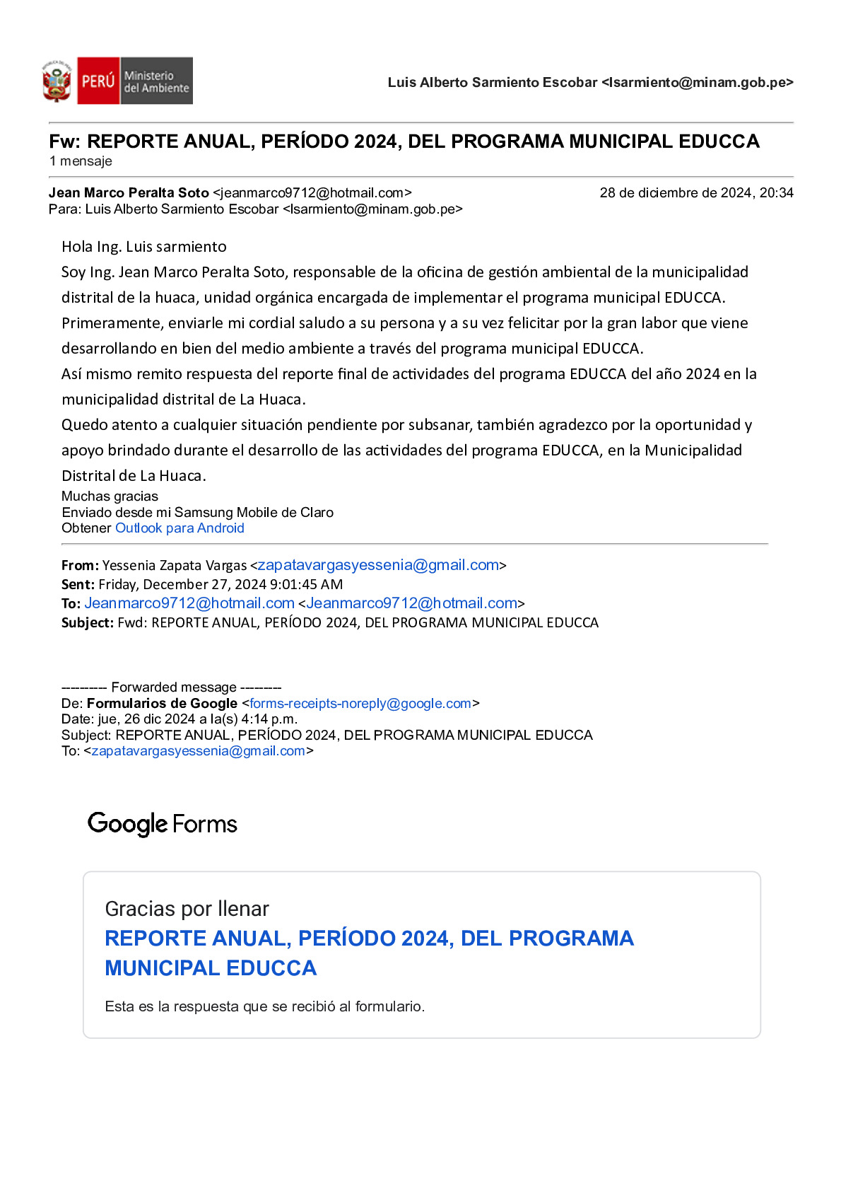 Reporte Anual 2024 del Programa Municipal EDUCCA de la Municipalidad Distrital de La Huaca, Provincia de Paita, Región Piura