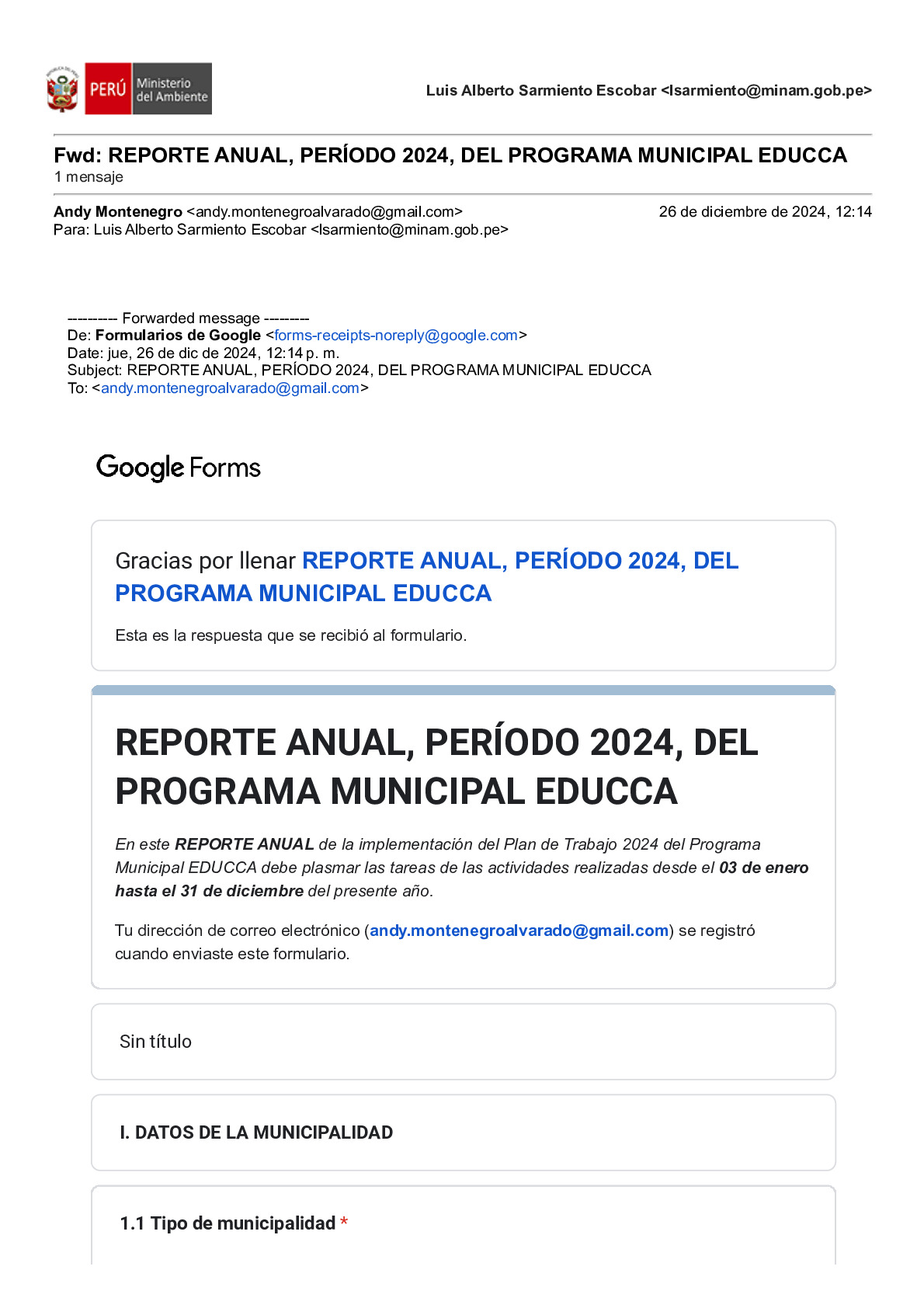 En este Reporte Anual de la implementación del Plan de Trabajo 2024 del Programa Municipal EDUCCA, se presentan las tareas y actividades realizadas durante el período del 3 de enero al 31 de diciembre de 2024. El documento ha sido elaborado por la Municipalidad Distrital de Awajún, provincia de Rioja, región San Martín, como parte de sus acciones en el marco del Programa Municipal EDUCCA.